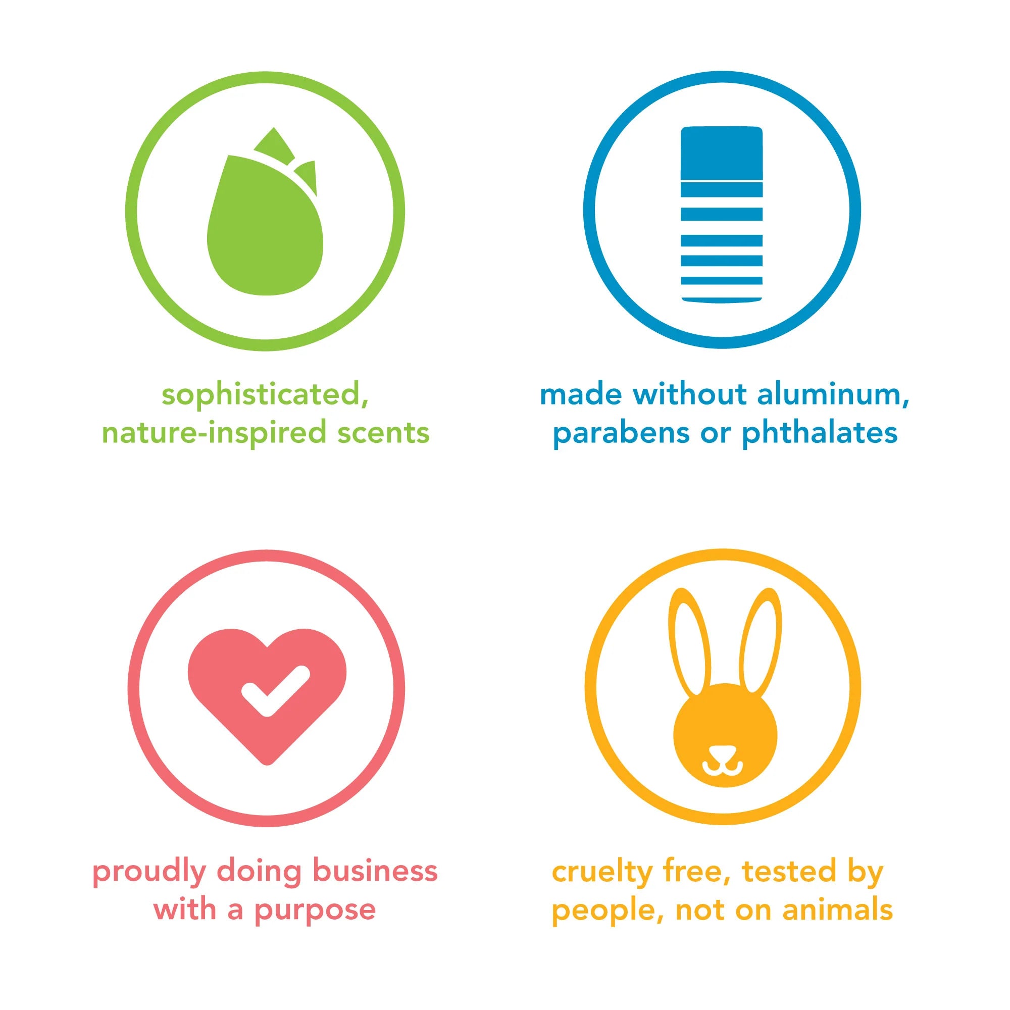• Cruelty free. Tested by people, not on animals.